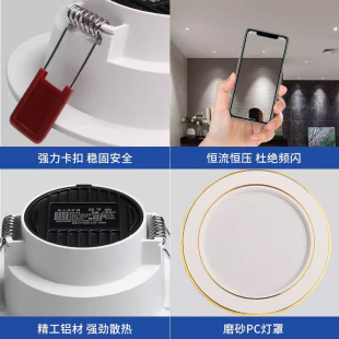 家用筒灯led天花射灯5w嵌入式 开孔7.5cm客厅吊顶简灯灯具孔灯洞灯