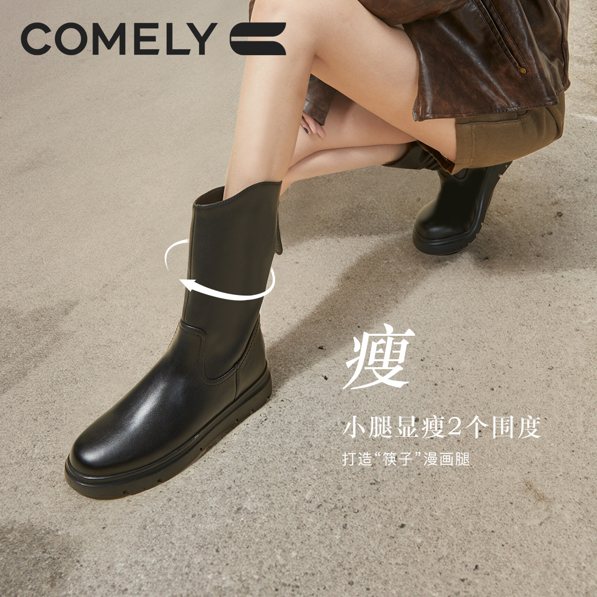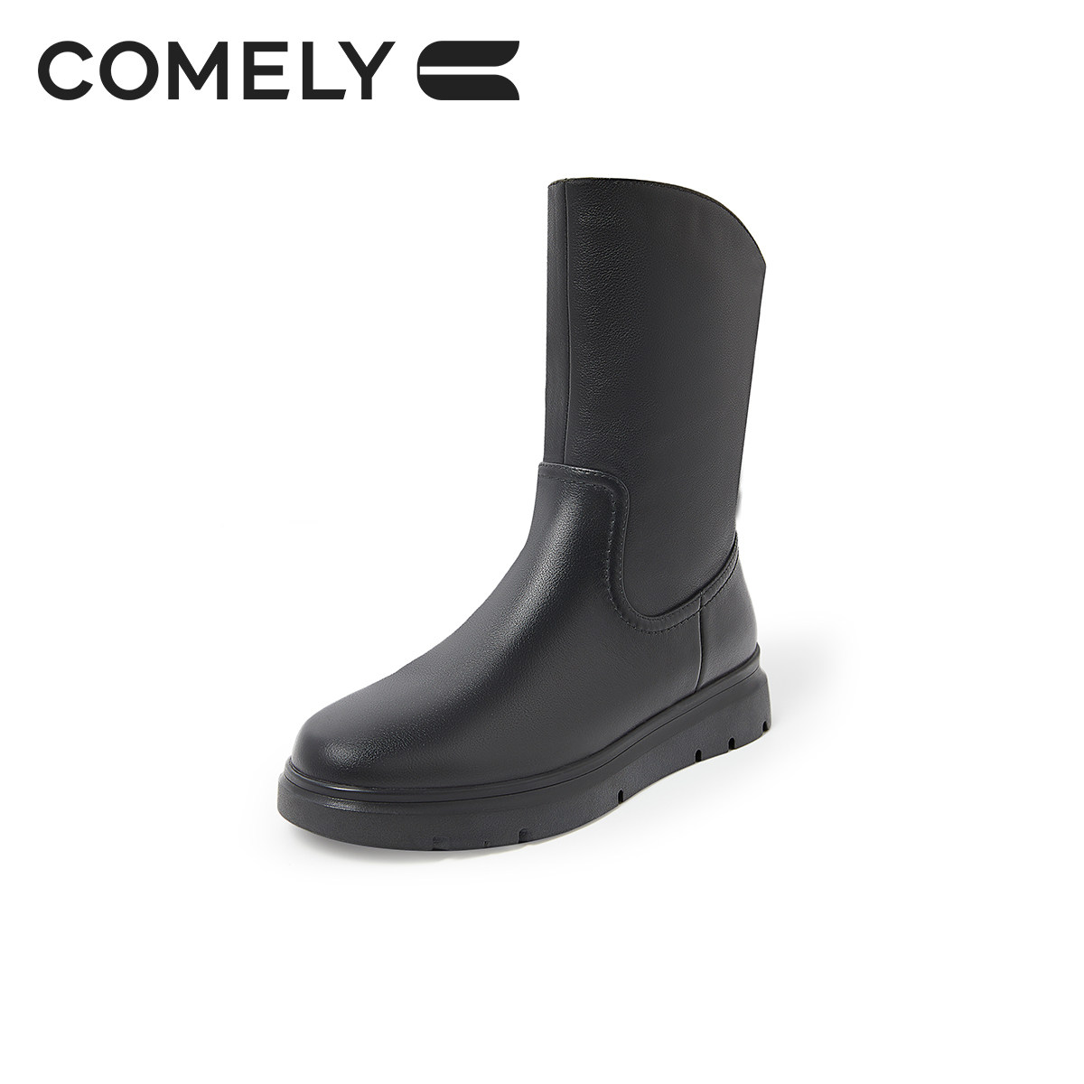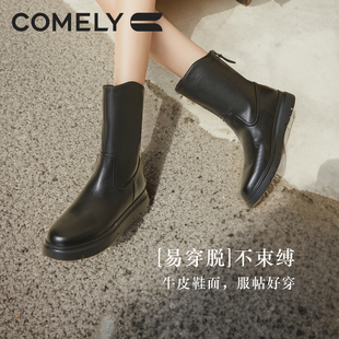康莉牛皮面雪地靴女防水防滑冬季 加绒保暖厚底靴子抗寒中筒靴 新款