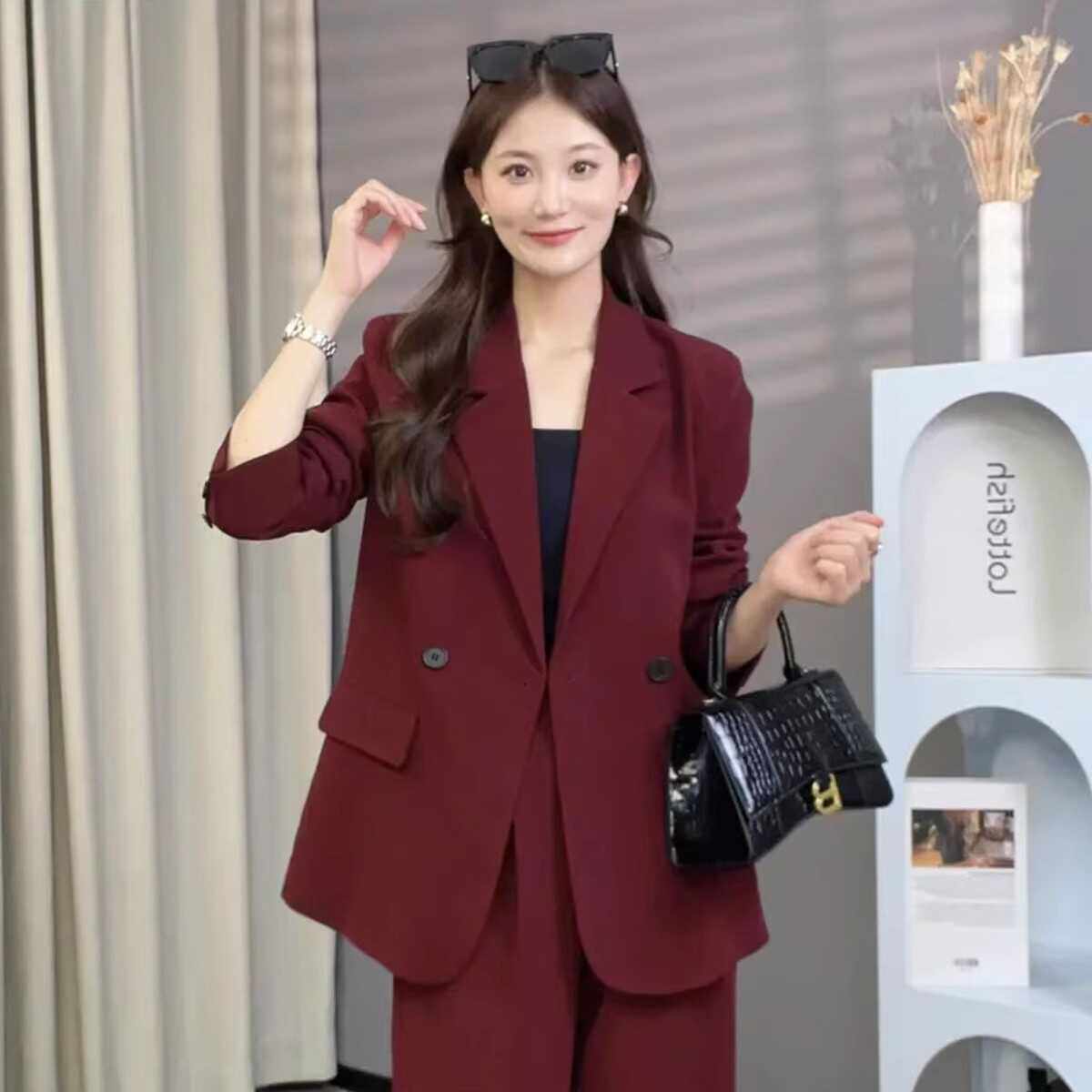 西装 胖mm轻奢高级感职业气质西服阔腿裤 套装 新款 两件套 女秋季 大码