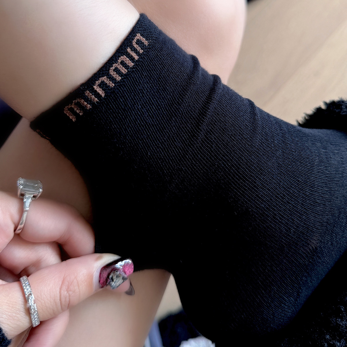 日系复古镂空羊毛小腿袜子女中筒堆堆袜秋冬保暖配靴子长筒袜靴袜