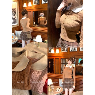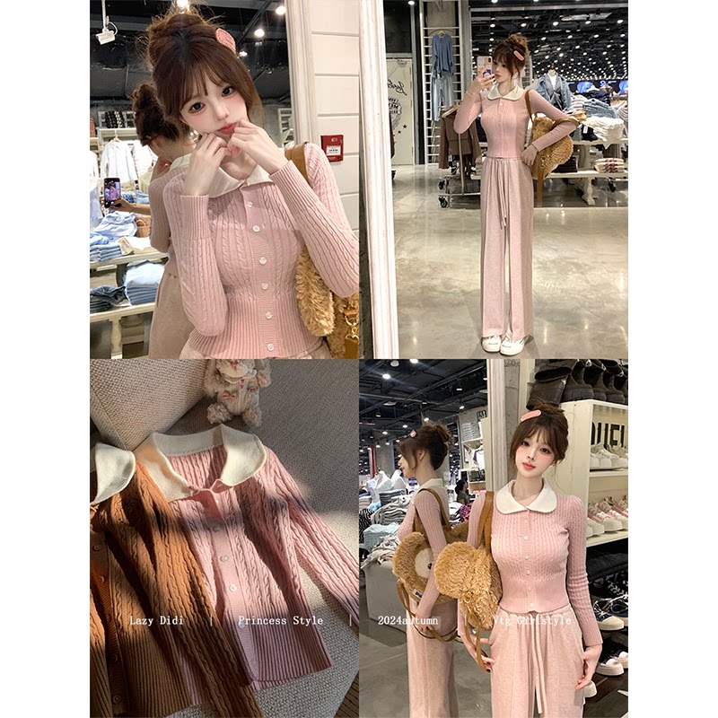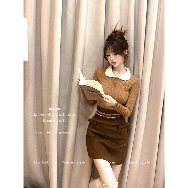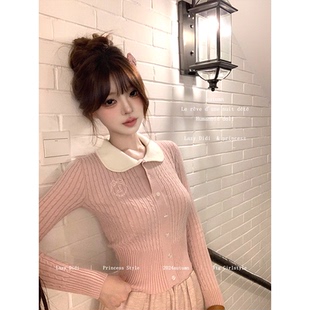 娃娃领百搭甜美上衣 刺绣肌理麻花针织毛衣修身 Lazy Didi进修校花