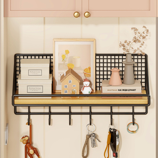 玄关壁挂式 饰架 钥匙收纳架实木免打孔入户墙上钥匙挂钩门口创意装