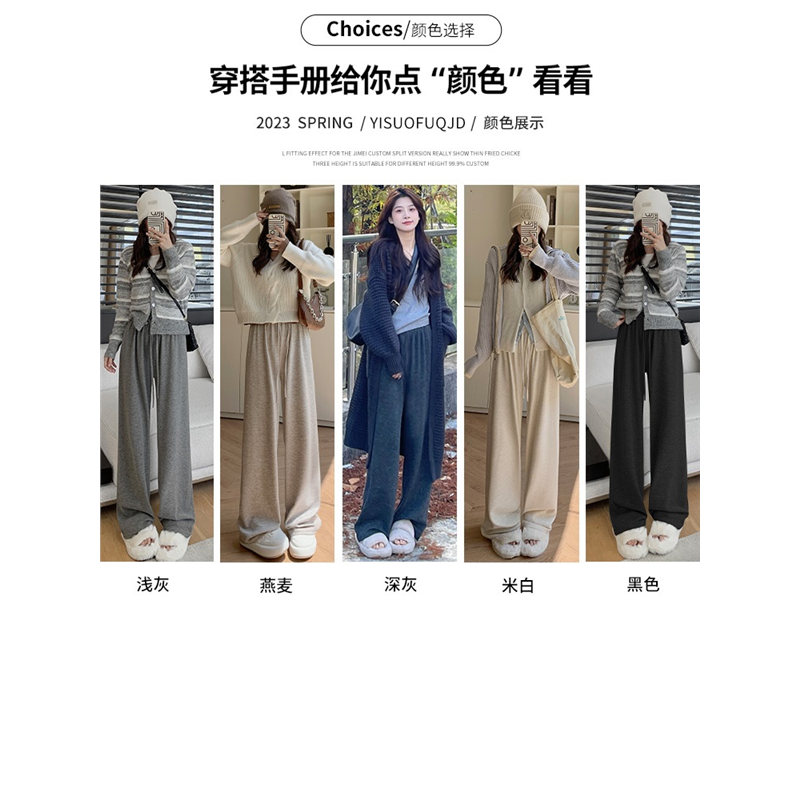 冬 高腰垂感拖地直筒软糯休闲阔腿裤 韩国灰色糯米裤 女春秋2024新款