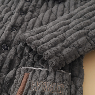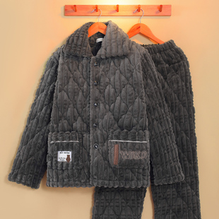 珊瑚绒家居服套装 三层夹棉睡衣男冬季 加厚加绒保暖中老年爸爸冬款