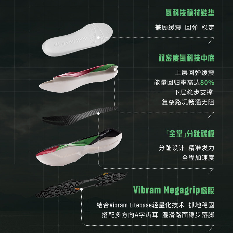 安踏冠军户外猎隼2精英版 112515516A 男Vibram氮科技碳板越野跑鞋