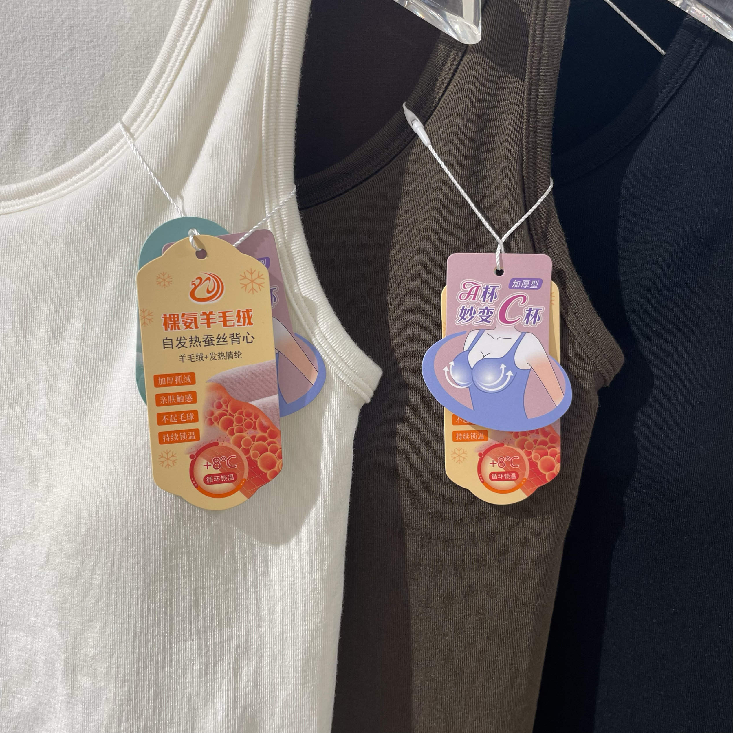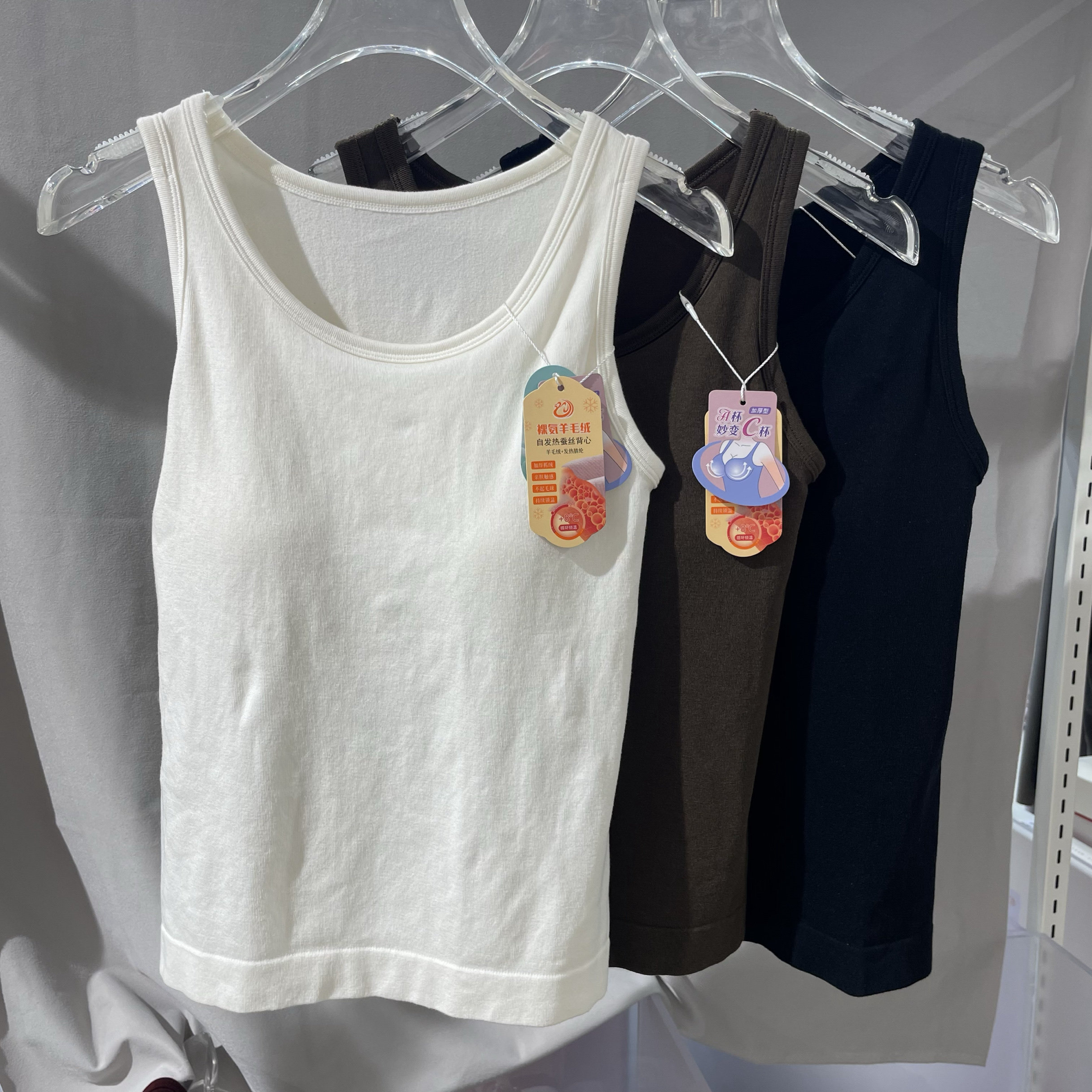 蕉内热皮501 女士吊带背心保暖发热带杯带胸垫白色打底内搭冬季