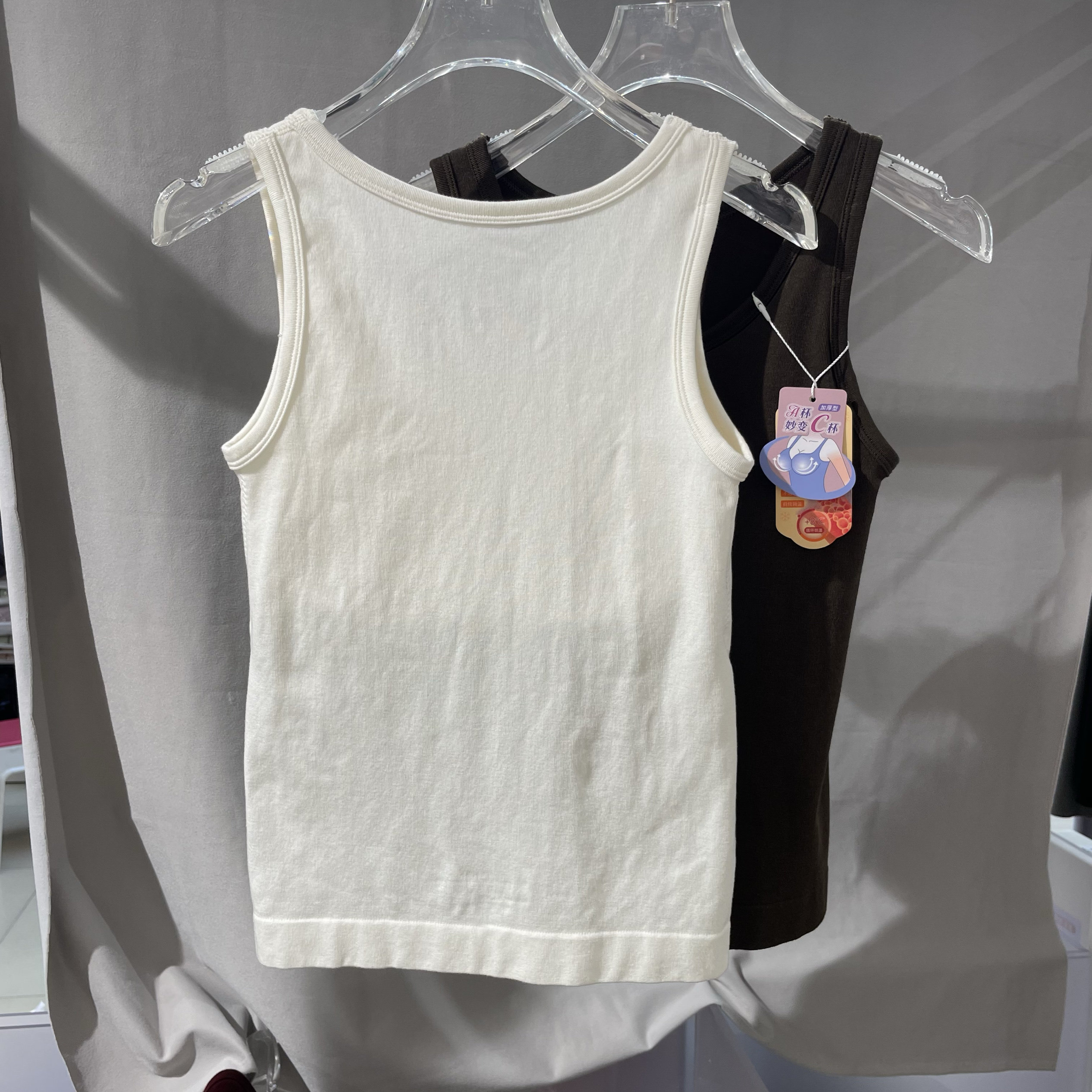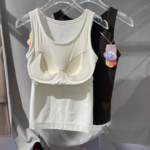 松山棉店二合一女士背心免穿文胸体吊带带胸垫白色内搭打底内衣秋