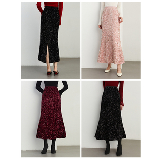 2025秋冬新款 短裙A字百搭亮闪闪显瘦韩系高级感拼色亮片半身裙女