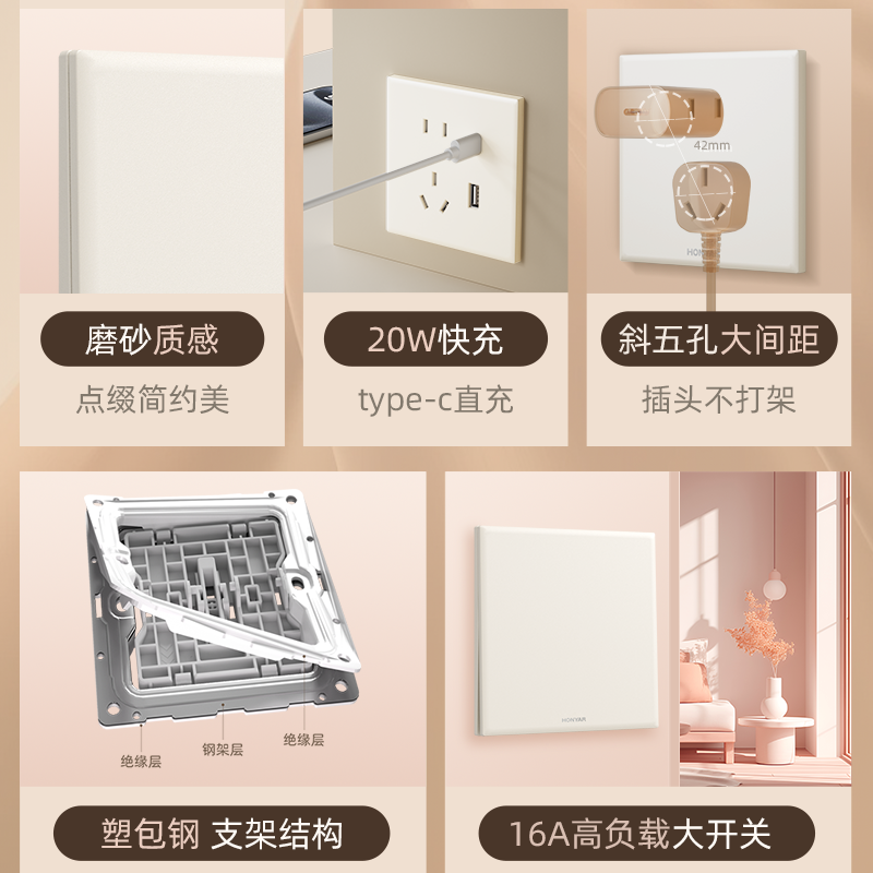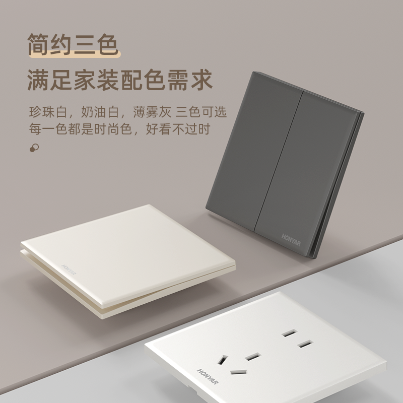 国际电工86型家用暗装 开关插座面板10A一开五孔灰色墙壁电源插座