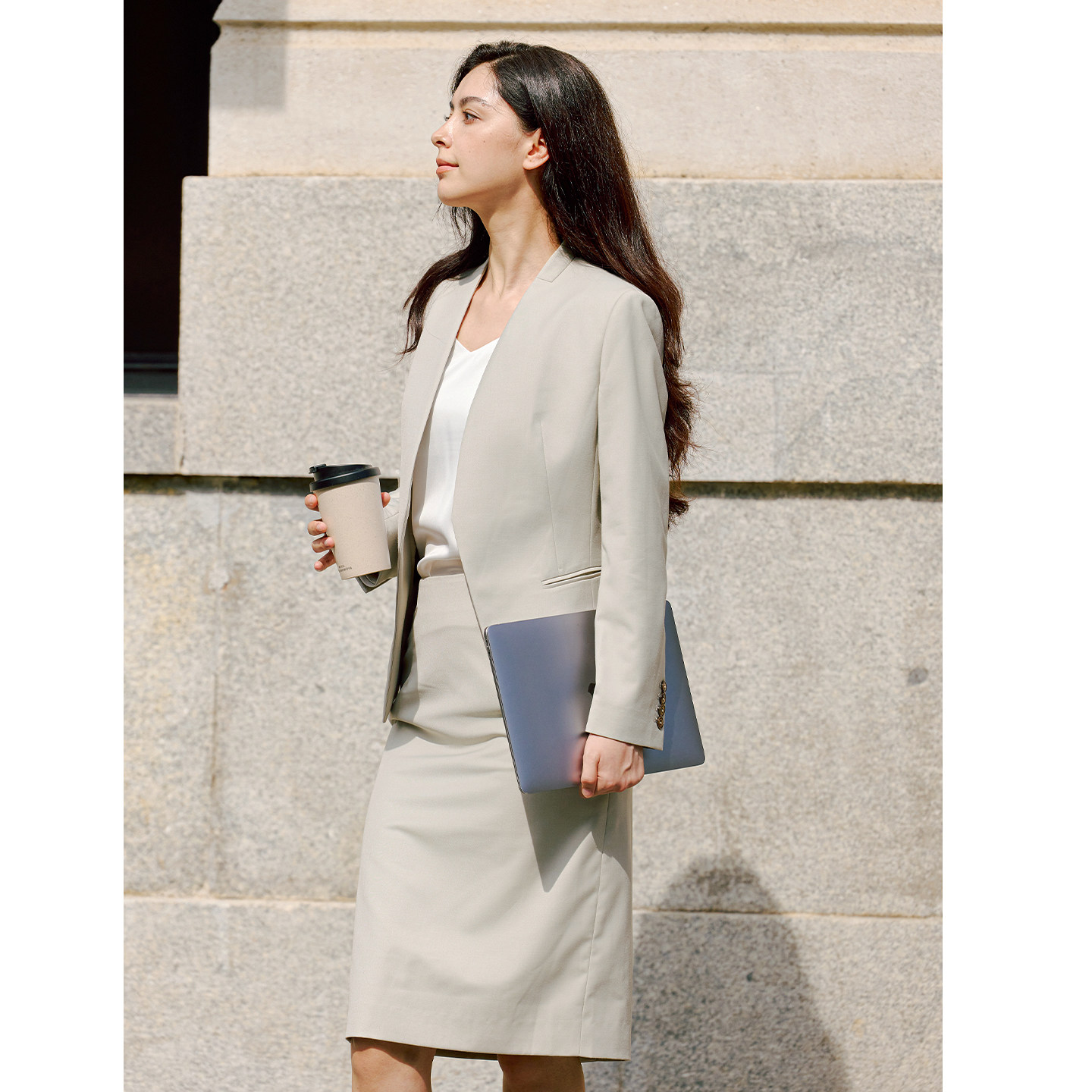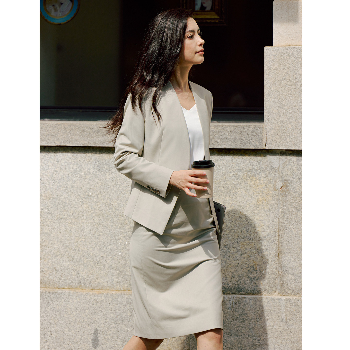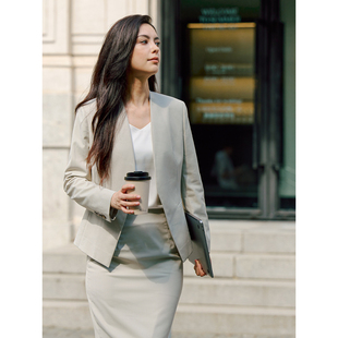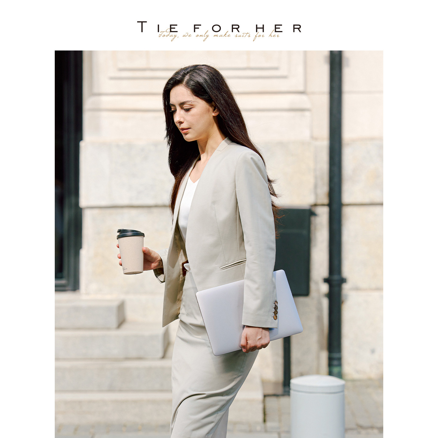 TieForHer 高智极简职业女士外套 Yale律政女主雾松燕麦色无领西装