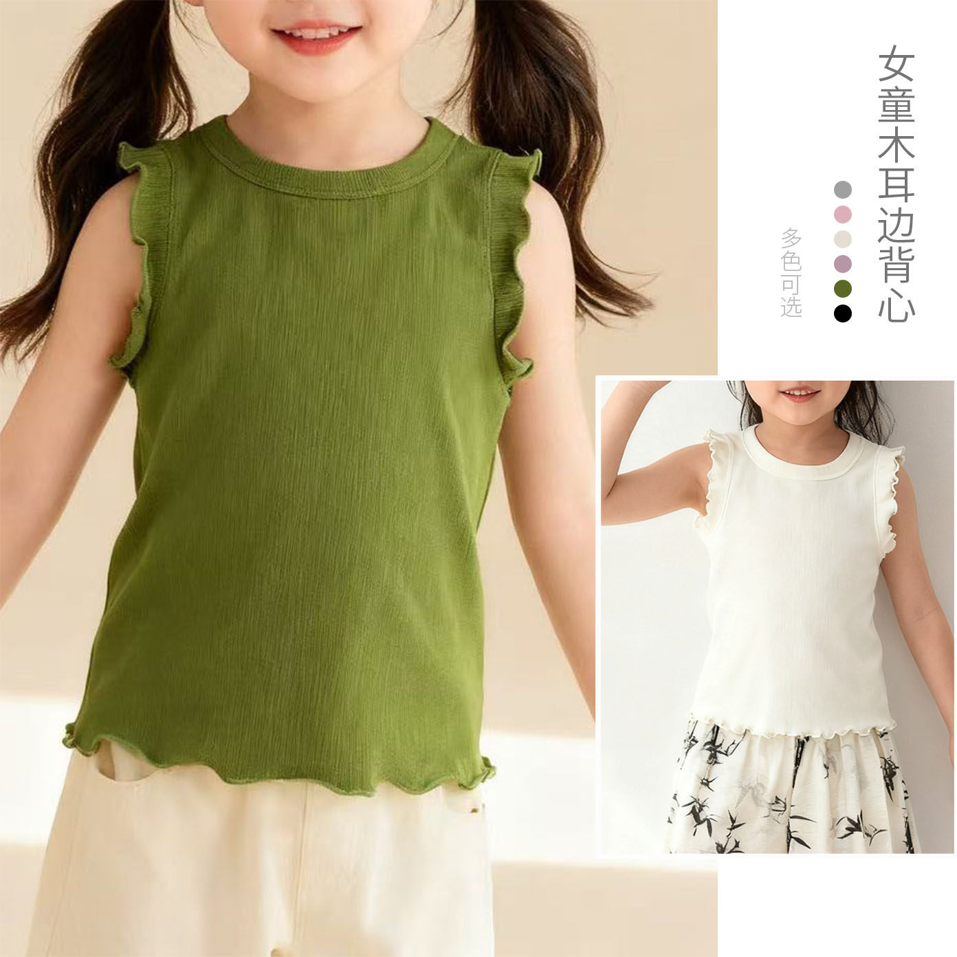 无袖 女童薄款 上衣170大码 甜辣妹少女背心 亲子款 童装 木耳边背心