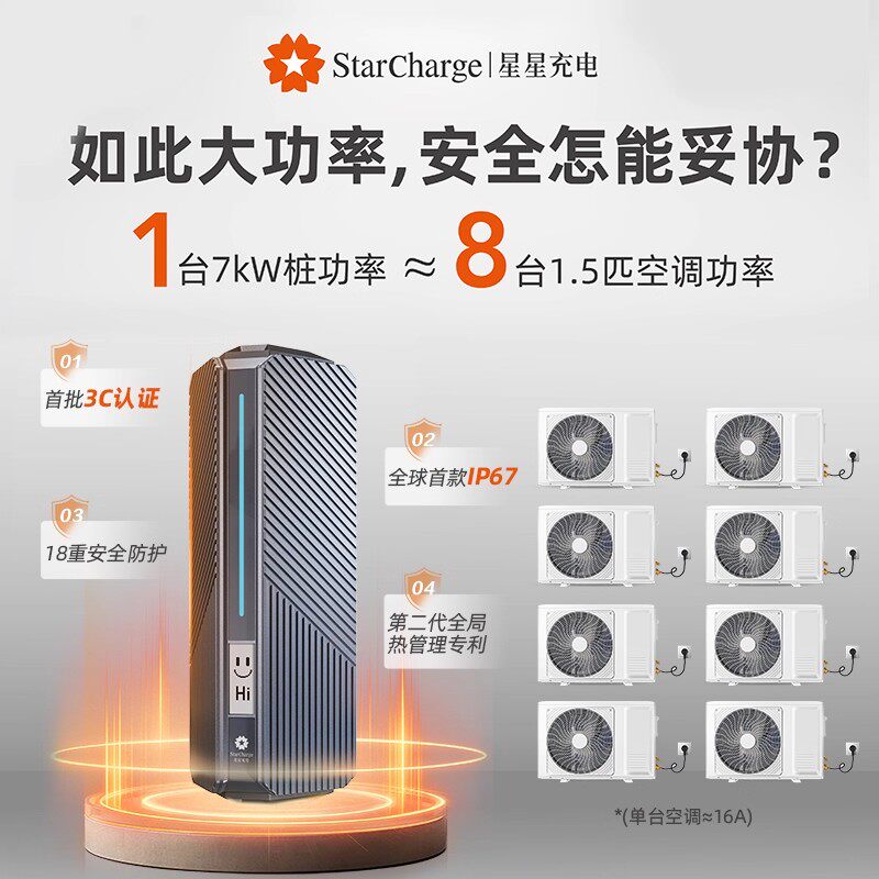 星星充电桩家用7kW新能源电动汽车充电桩适配特斯拉理想比亚迪