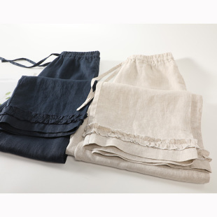 女薄款 松弛感裤 夏9分直筒裤 雨露麻防蚊裤 子 胖mm大码 纯亚麻阔腿裤
