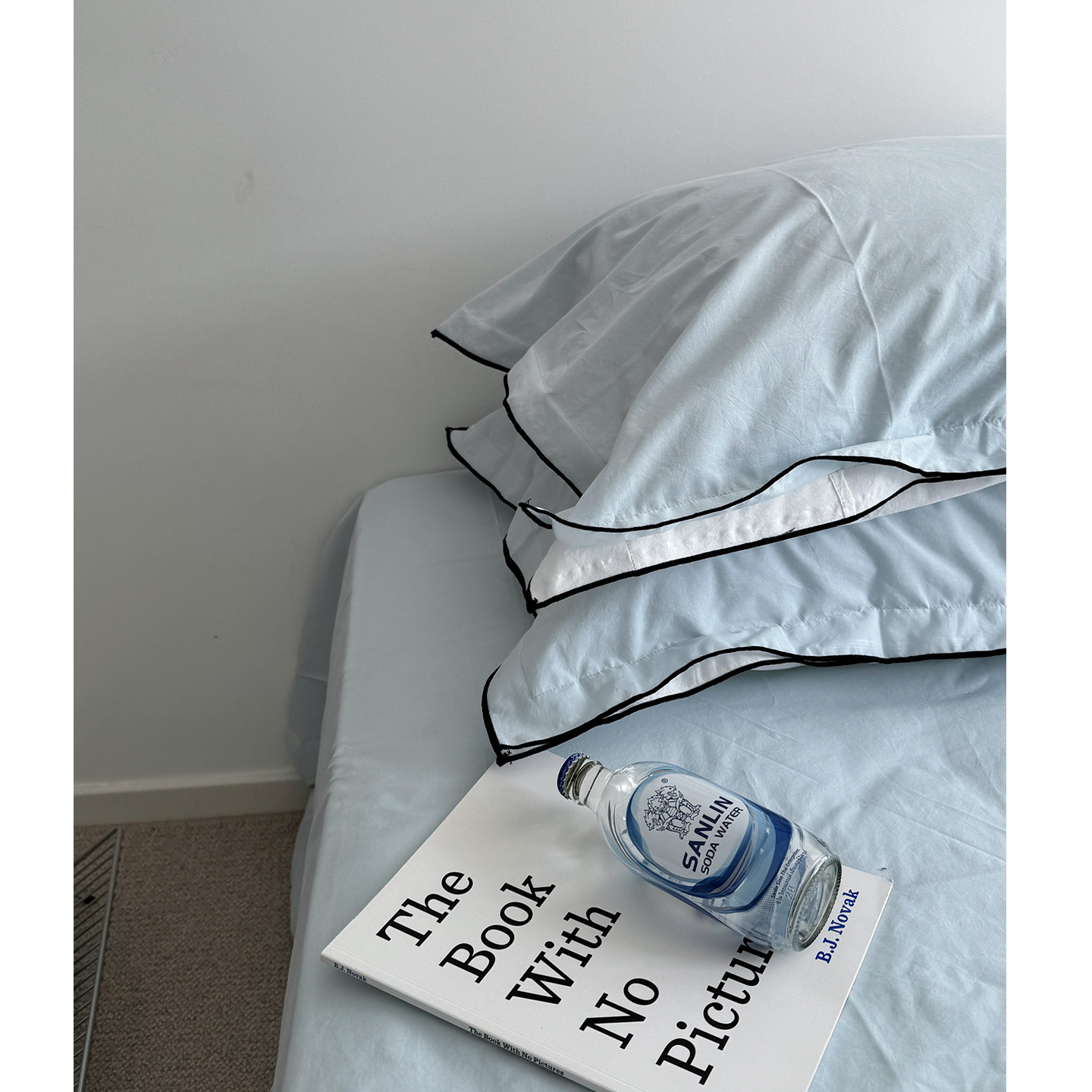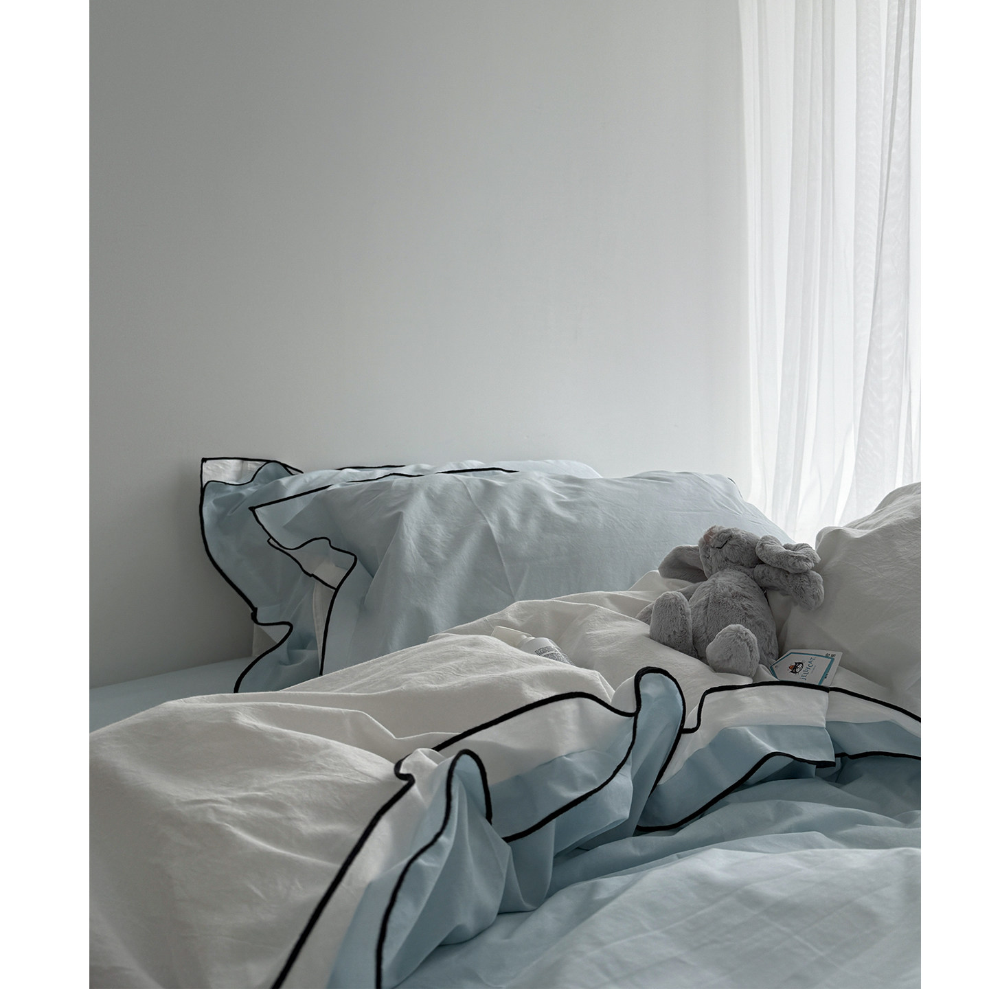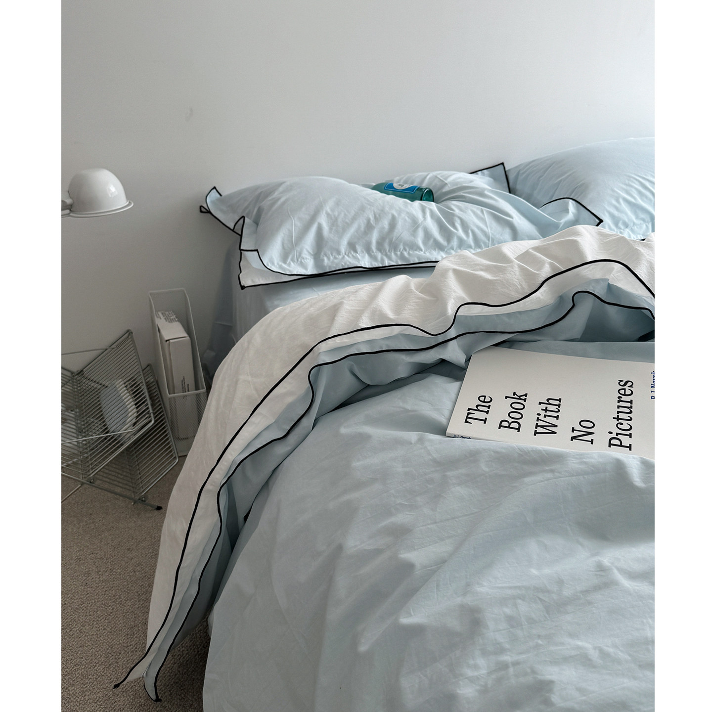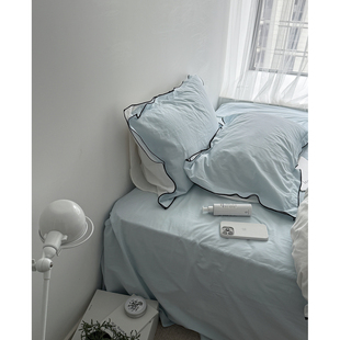 8月 Nordic北欧密拷边冰岛蓝水洗全棉床单四件套床笠被套 文森特
