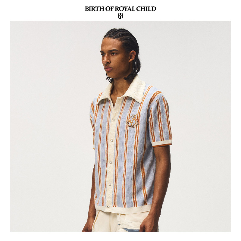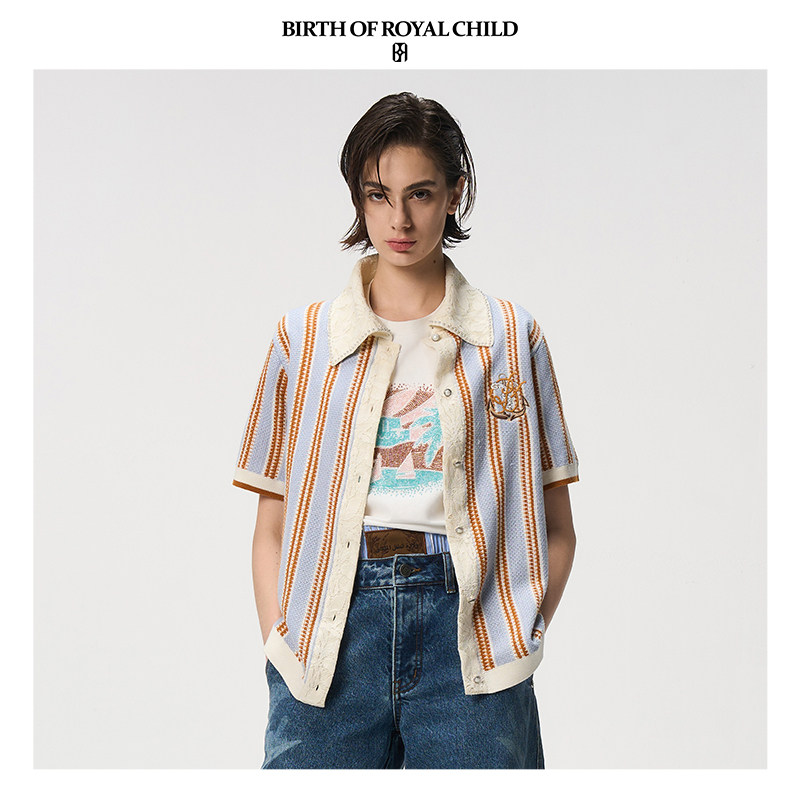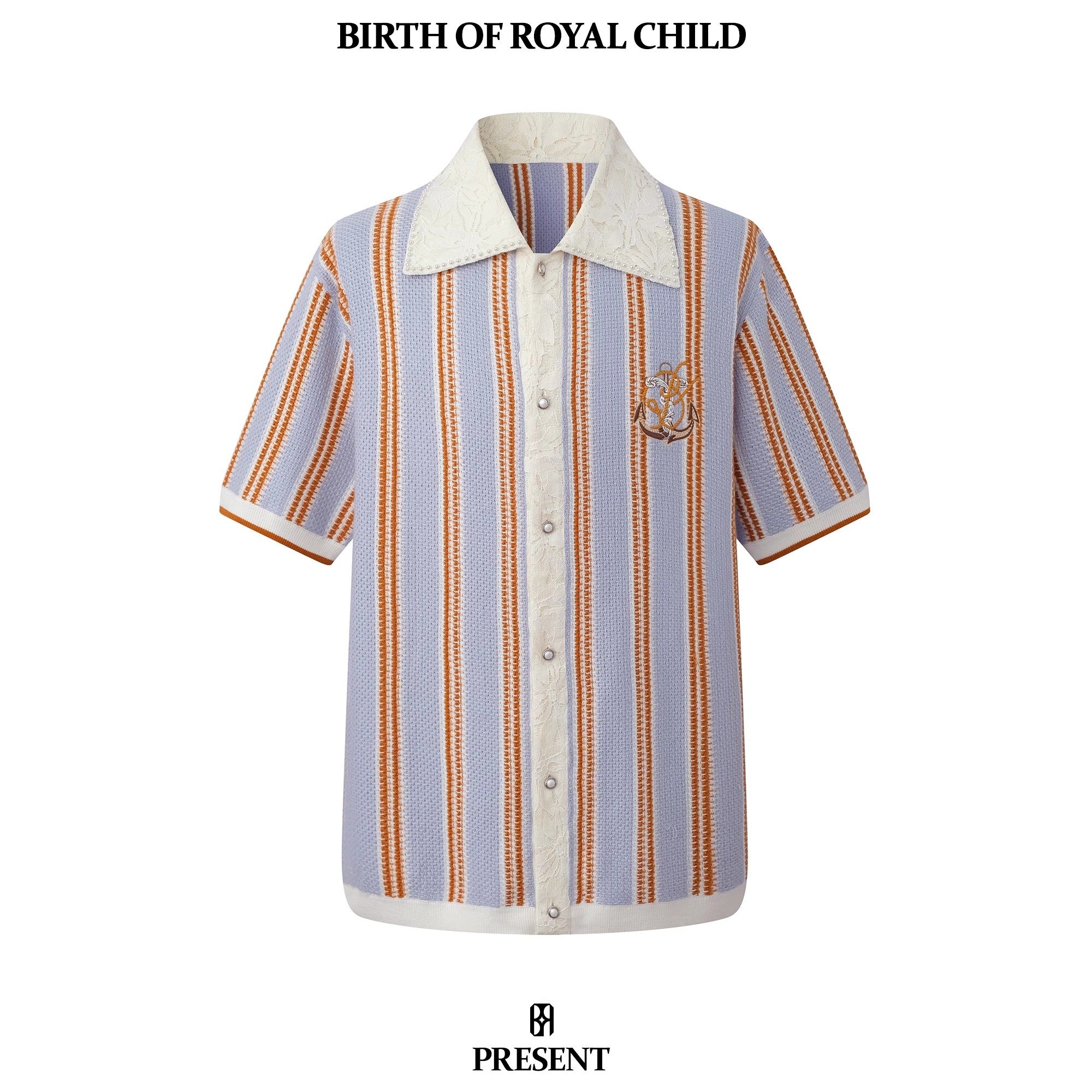 CHILD.BORC ROYAL 郝熠然同款 珍珠条纹蕾丝衬衫 BIRTH 短袖
