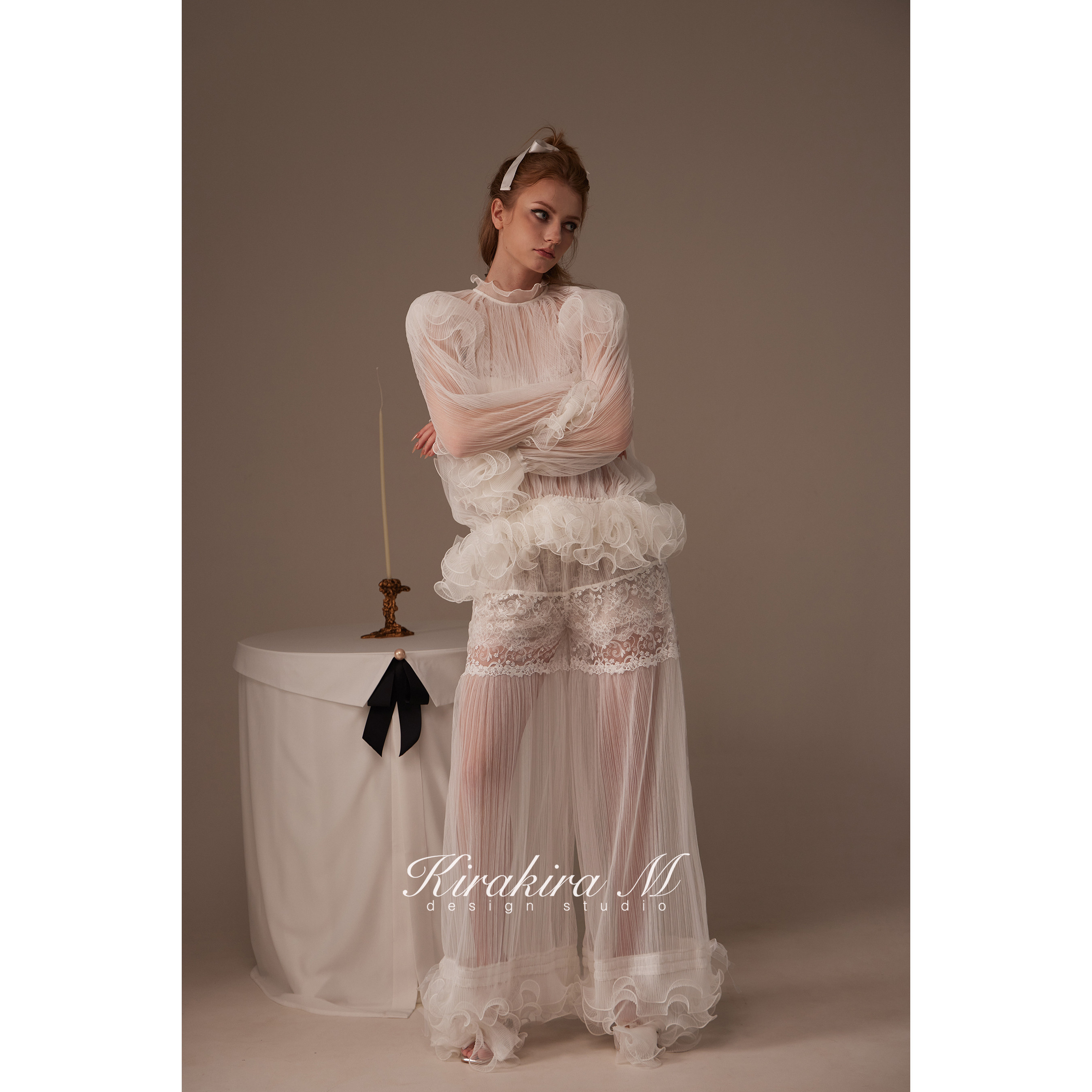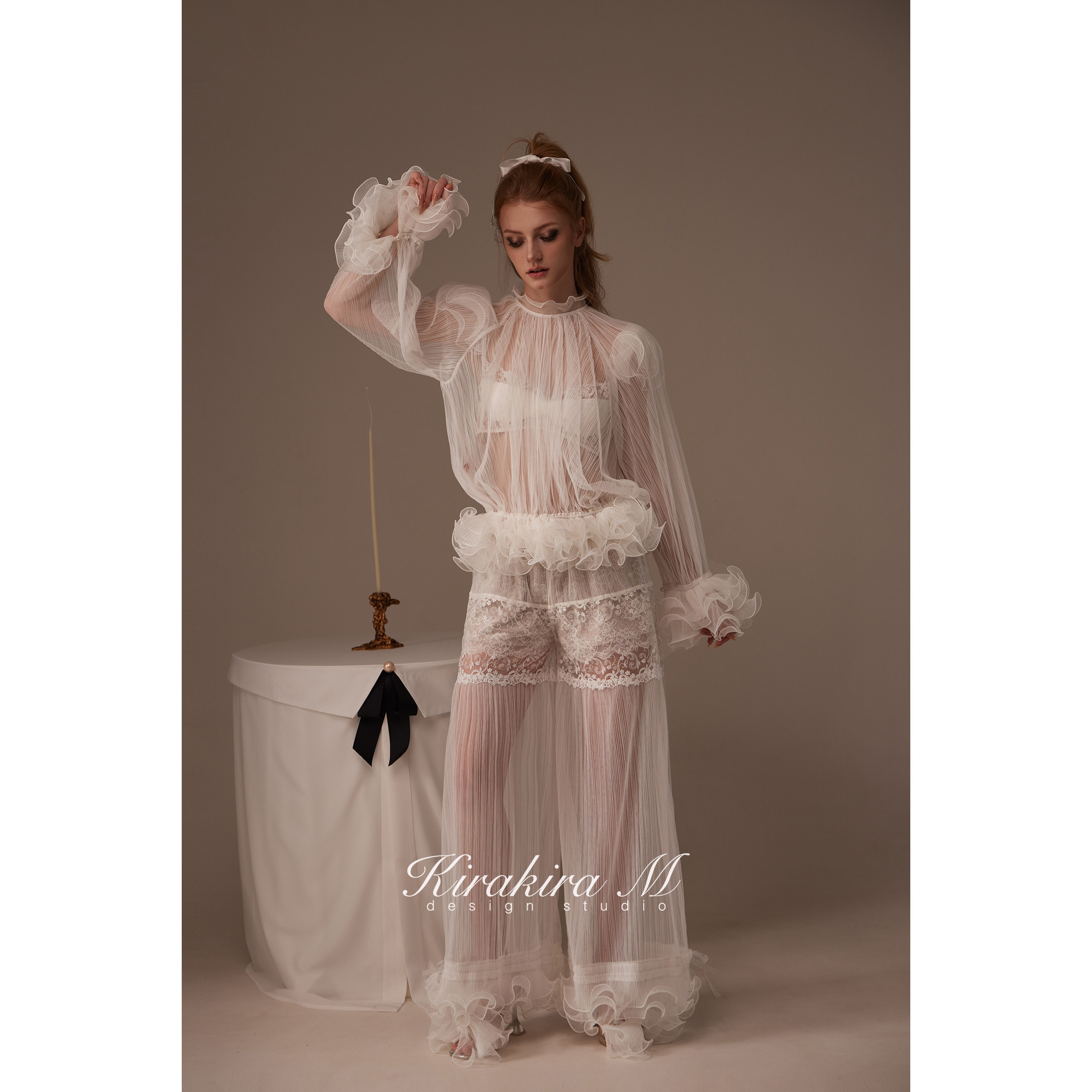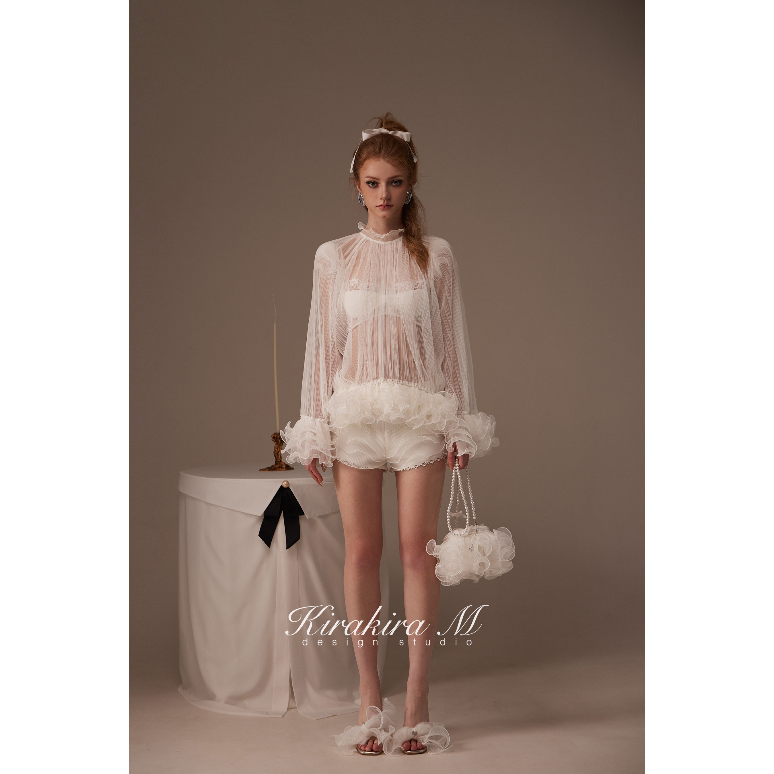 花边短裤 25SS 蕾丝胸衣 Amara半透视打褶花边罩衫 Kirakira