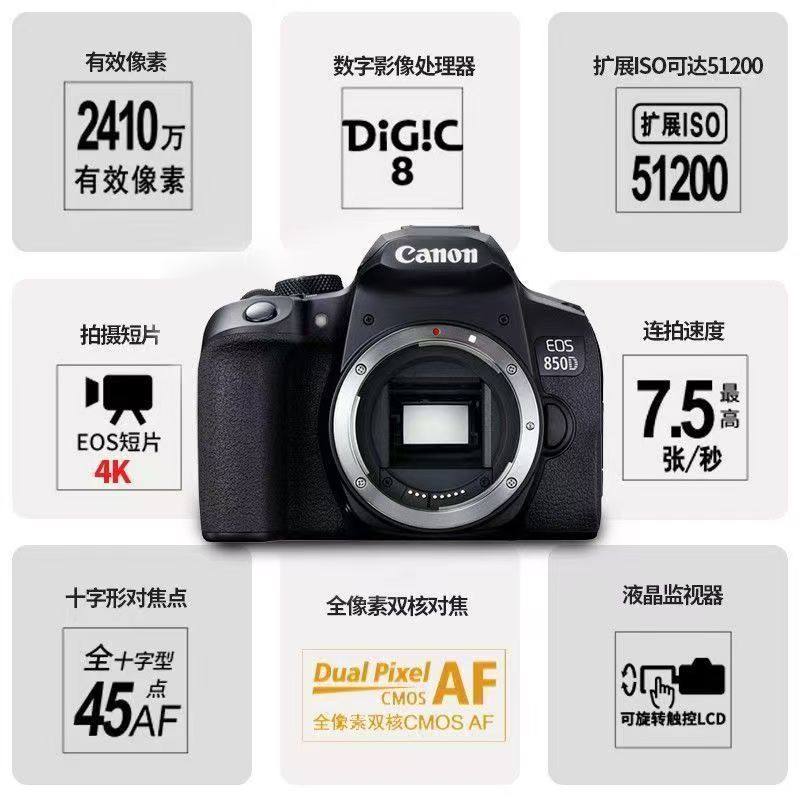 佳能EOS850D高清4K数码 旅游入门专业单反摄影照相机90D80D70D摄像