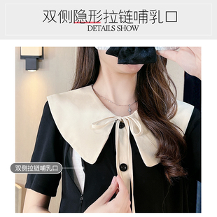 套装 夏哺乳上衣甜美穿搭裙子夏季 娃娃领雪纺连衣裙 2025新款 孕妇装