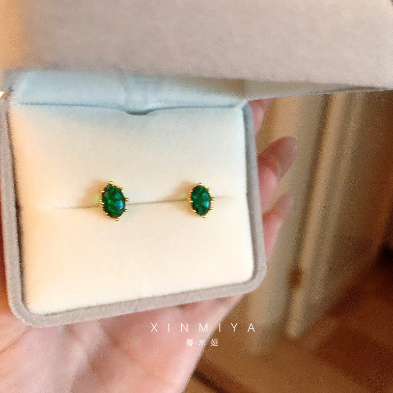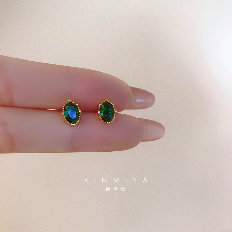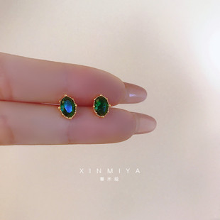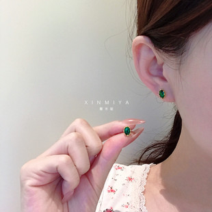 高级感复古椭圆祖母绿锆石耳钉2026新款 独特耳环简约气质耳饰 爆款