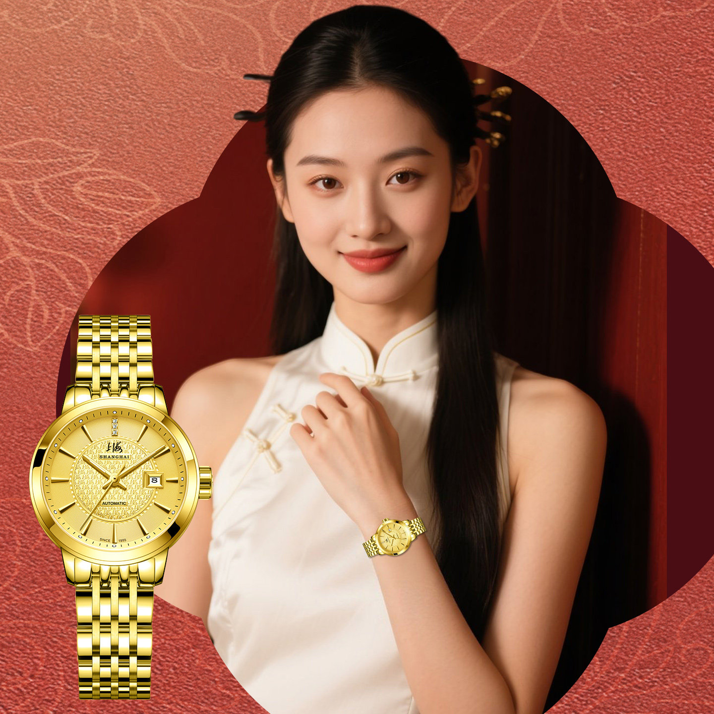 上海65周年24K金限量国产手表自动机械表女士腕表送礼精选6008aa