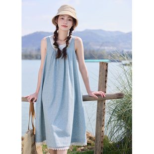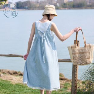 新款 女夏季 镂空花边连衣裙淡人内外两件套装 紫涵打底吊带背心无袖