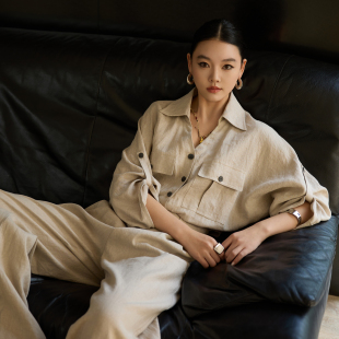 新款 女2025夏季 时尚 洋气减龄连体裤 极简老钱风亚麻工装 长裤 连体裤