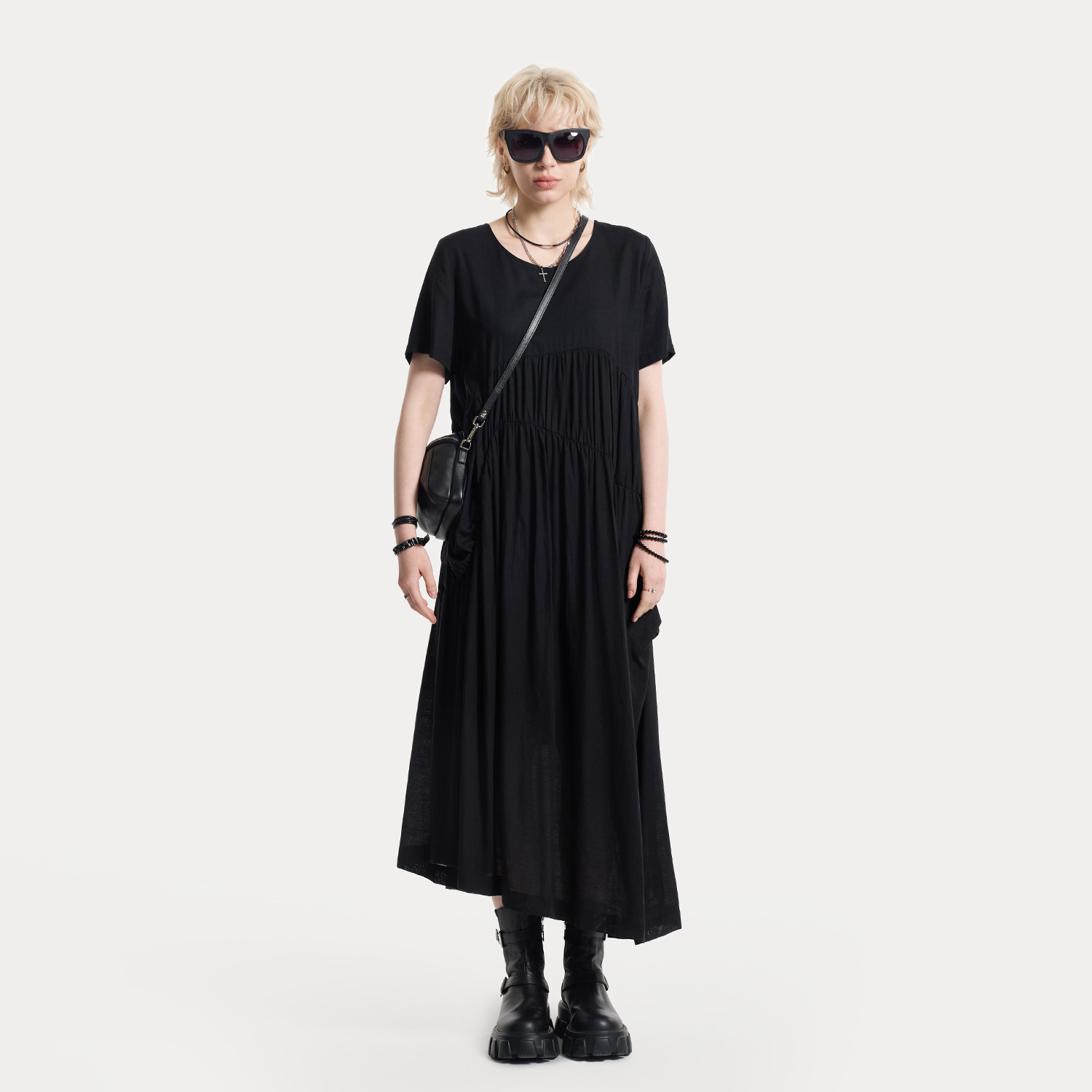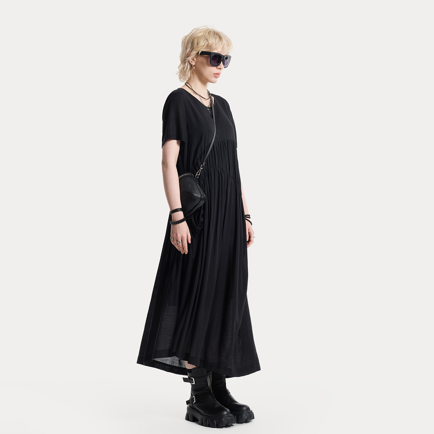 SourceWithU 2色贵气感漂亮小裙摆风琴褶连衣裙V领背心裙 A市千金