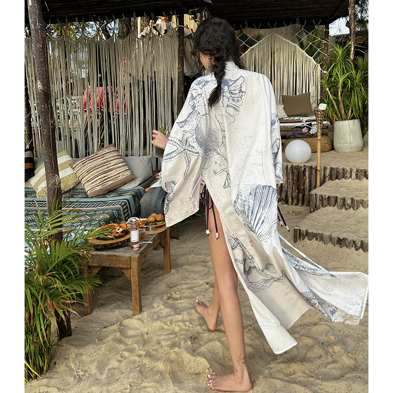 QSC原创贝壳化石浴衣披风外套连衣裙晨袍蝴蝶结腰带三件套