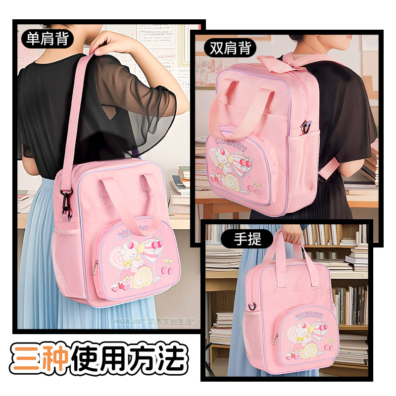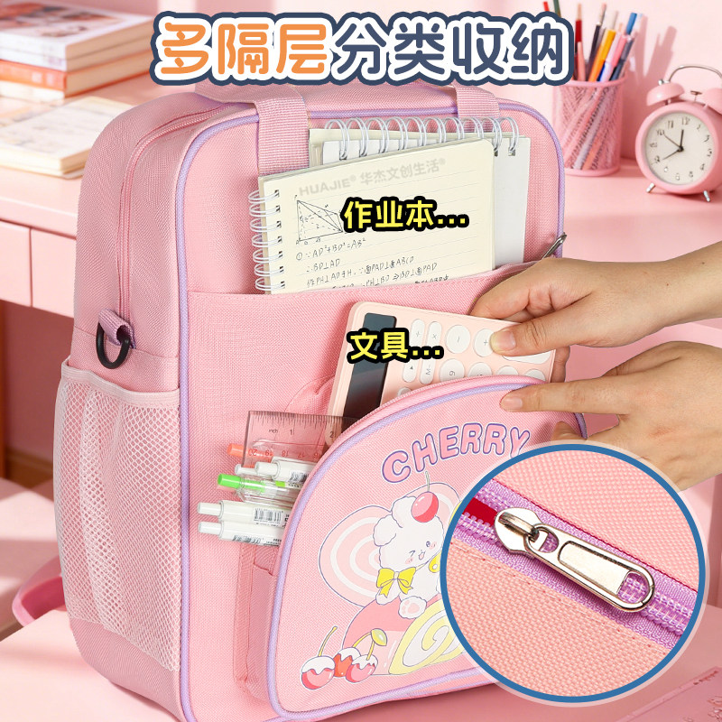 华杰多功能三用补习袋小学生作业手提袋男孩女孩拉链款 资料补课文件袋半圆笔袋网兜侧袋大容量多层收纳补课包