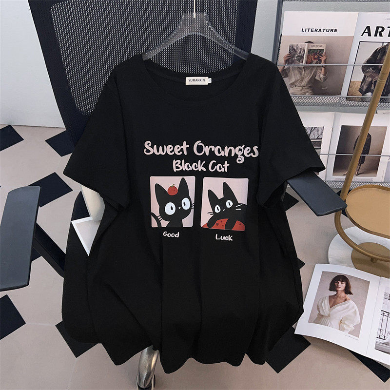 T恤女夏季 七月原创特大码 显瘦宽松遮肚上衣中长短袖 加肥款 女装