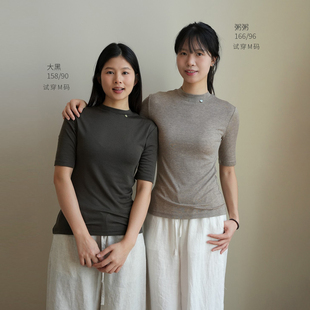 短袖 修身 T恤衫 春夏款 薄软 山东网店女装 女士兰精天丝羊毛五分袖