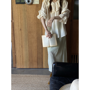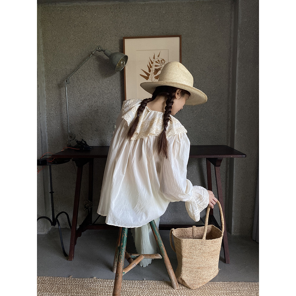 百搭气质上衣女 木耳领衬衫 仙草宝相提花缎真丝桑蚕丝白色法式 长袖