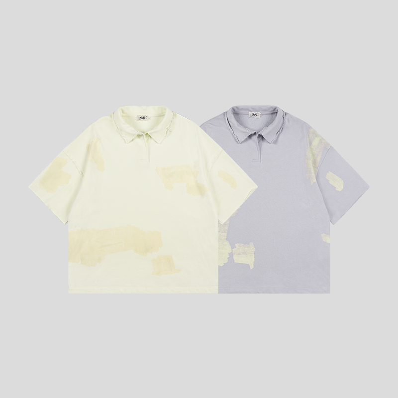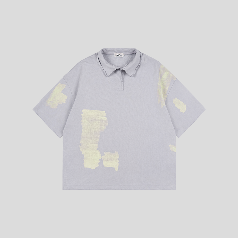 T恤 仿胶带印花收腰翻领oversize短袖 GOODBAI 916