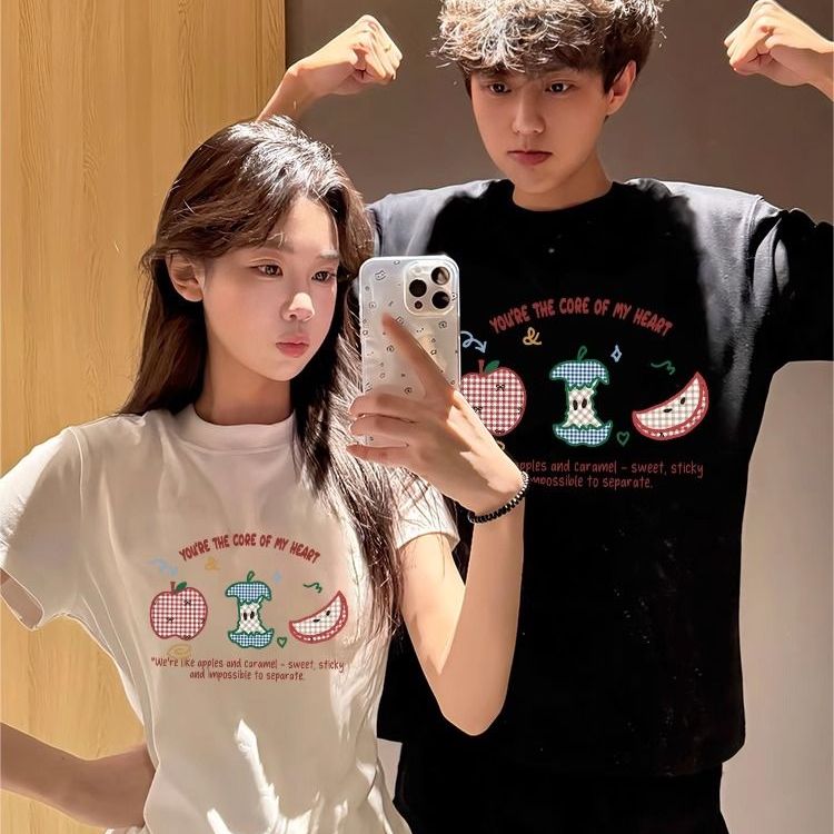 情侣装 正肩t恤短袖 2025新款 一长一短高级感小众修身 夏季 不一样