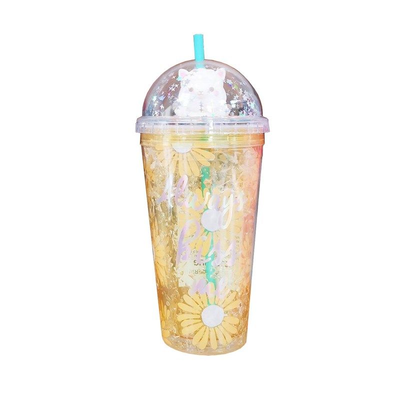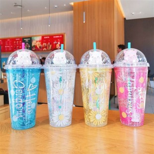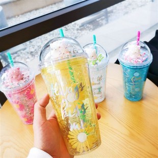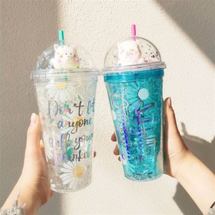 可爱羊驼吸管杯双层制冷创意夏日冰杯加厚少女心学生办公塑料水杯