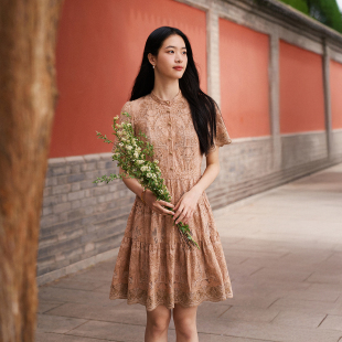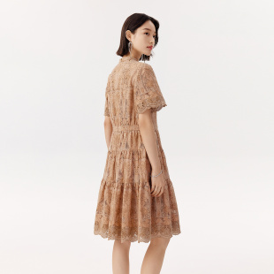 新款 VGRASS维格娜丝夏季 蕾丝绣花可露丽A字连衣长裙 浅夏织梦