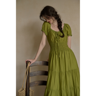 SimpleRetro天丝绉法式 显瘦气质长裙复古收腰裙子 度假连衣裙夏季