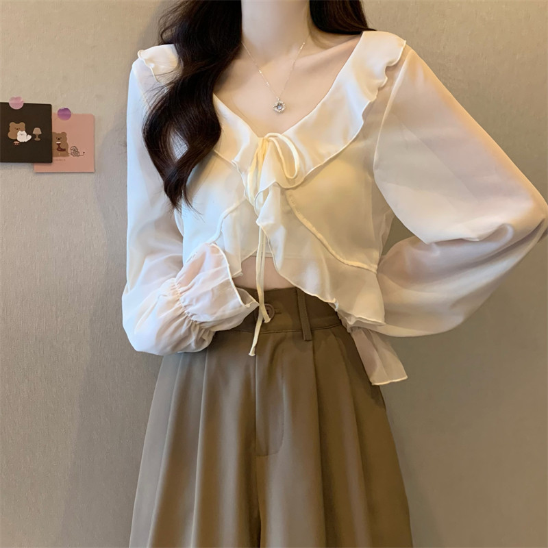 设计感开衫 吊带裙外搭小披肩2025新款 外套 女夏季 荷叶边防晒雪纺衫