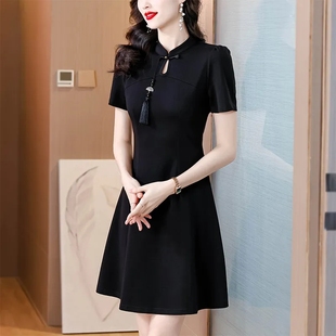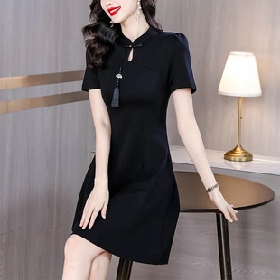 修身 改良旗袍大码 显瘦新中式 简约小黑裙子夏新款 连衣裙 300斤女装
