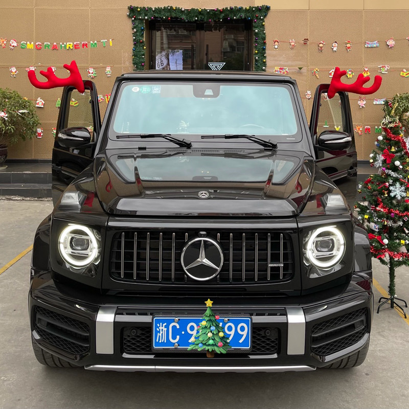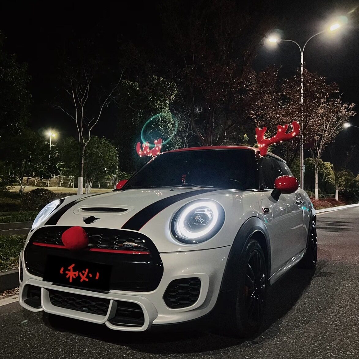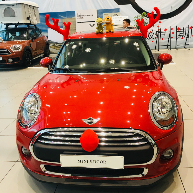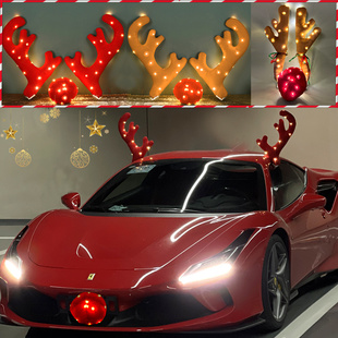 圣诞节汽车装 扮圣诞树4S店展厅发光汽车摆件 饰鹿角平安夜车顶装