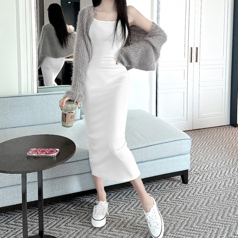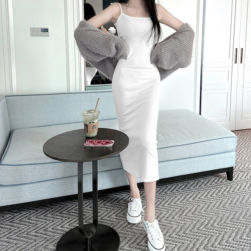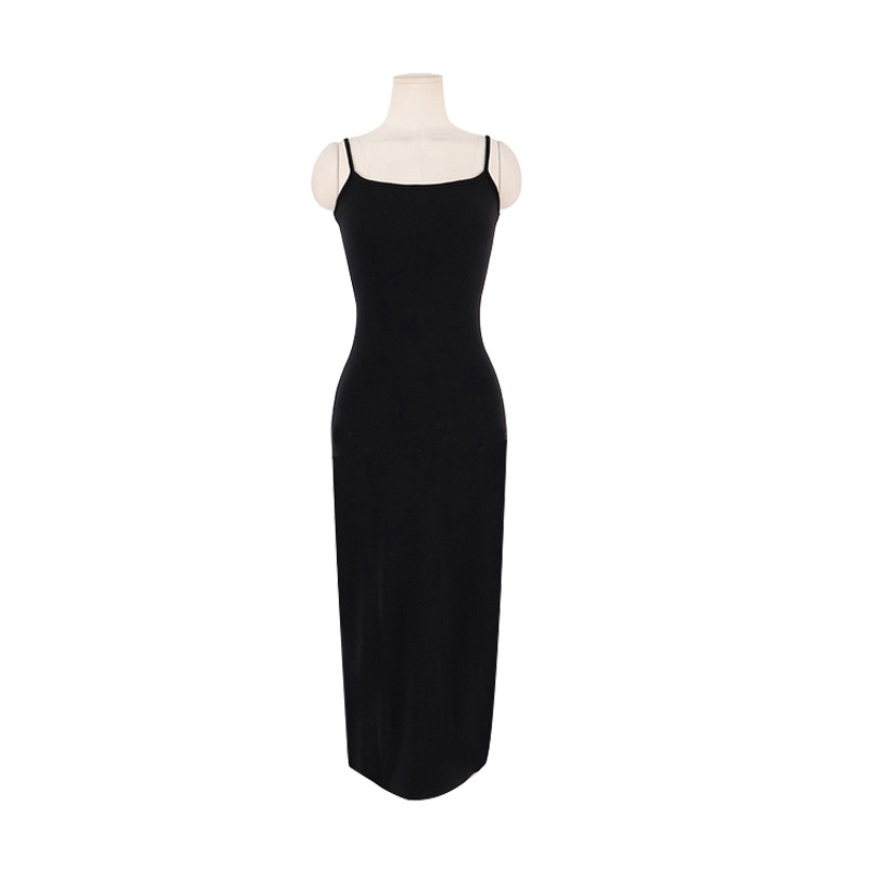 带胸垫莫代尔棉连衣裙修身 包臀连衣裙女纯欲性感辣妹吊带裙后开叉