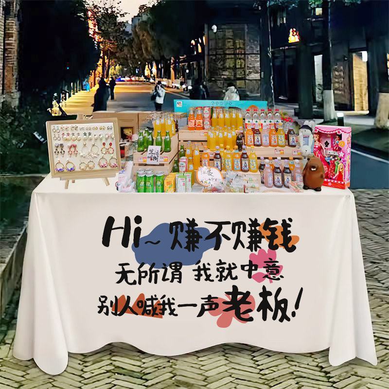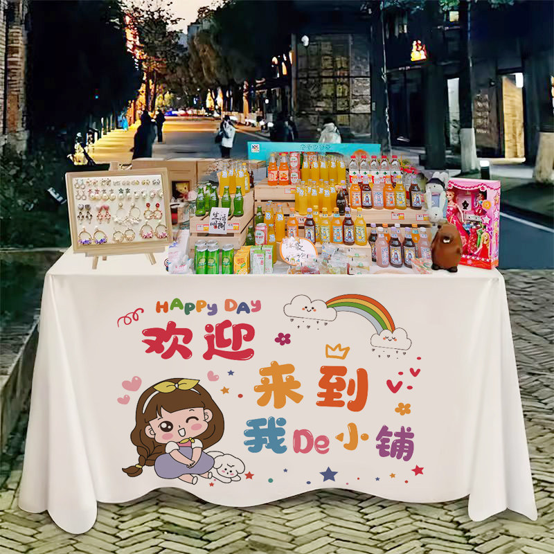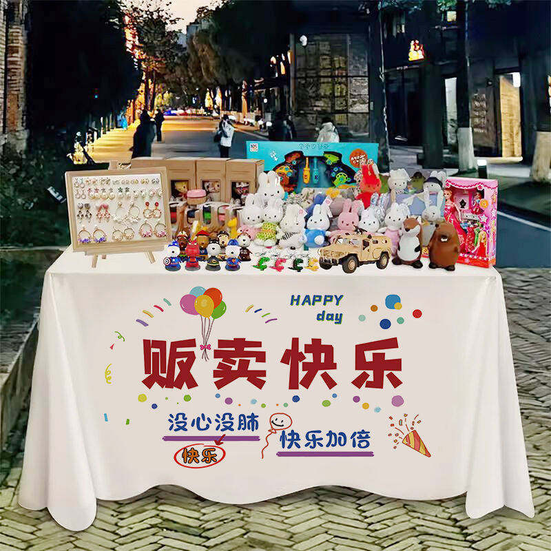 地摊招牌摆摊文案夜市街边摆摊桌布广告布小推车展示招牌桌布台布