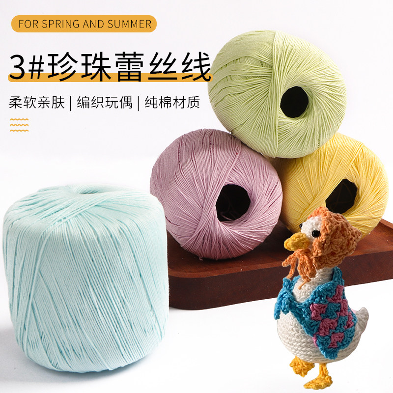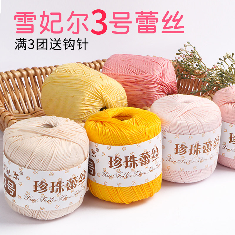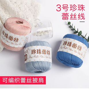 3号珍珠蕾丝线钩针手工diy材料包编织丝光细毛线团微钩