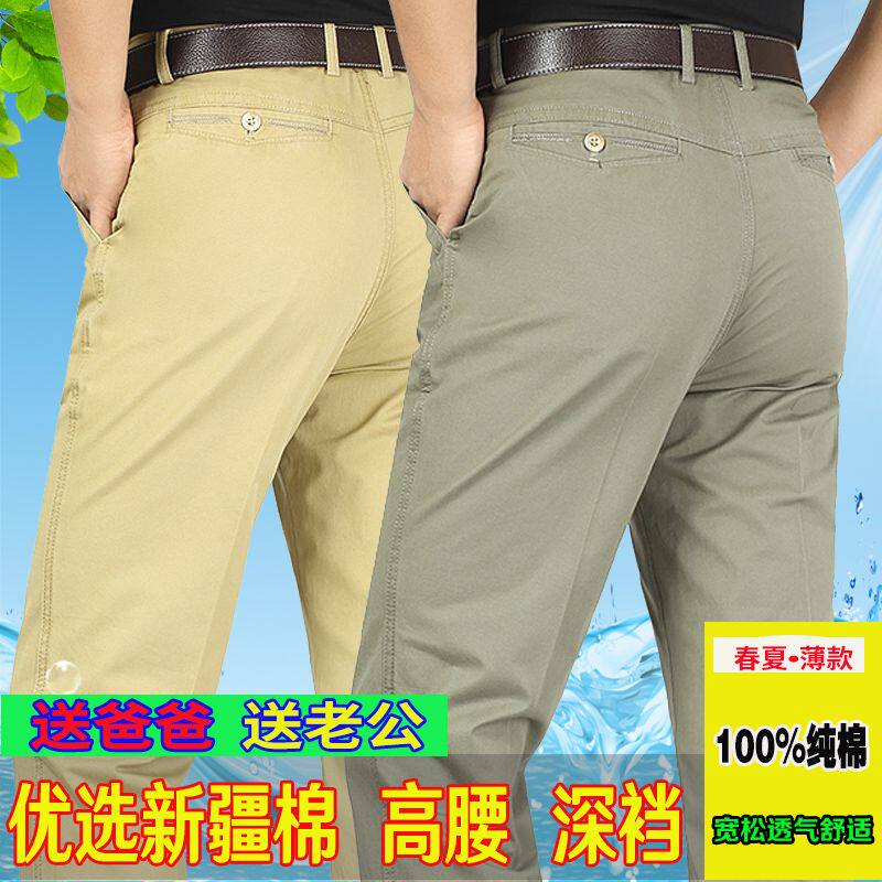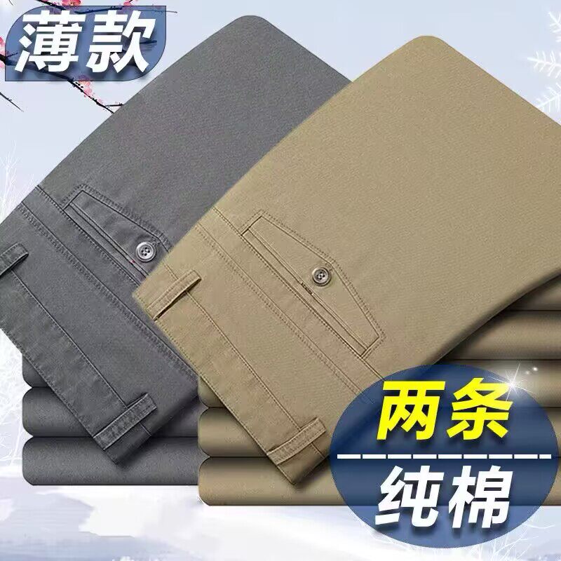 子爷爷长裤 夏季 商务高腰爸爸裤 男中老年人宽松直筒西裤 纯棉休闲裤