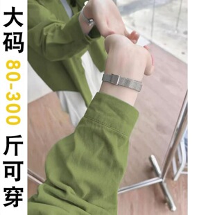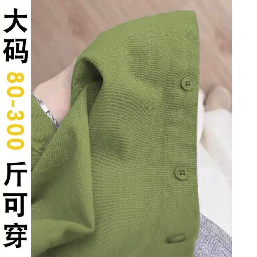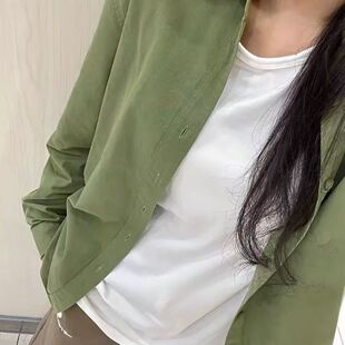 衬衣开衫 女内搭打底宽松显瘦polo领长袖 外穿 胖mm绿色纯棉衬衫 大码