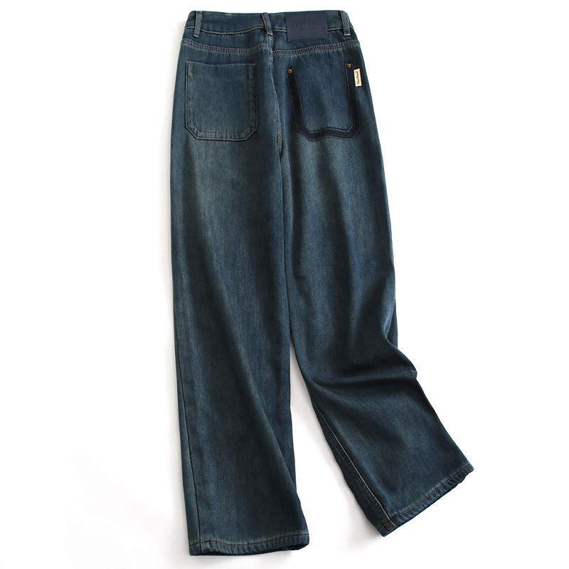 SUITEDALL复古蓝牛14oz宽松直筒A字立体猫须基础百搭休闲牛仔长裤