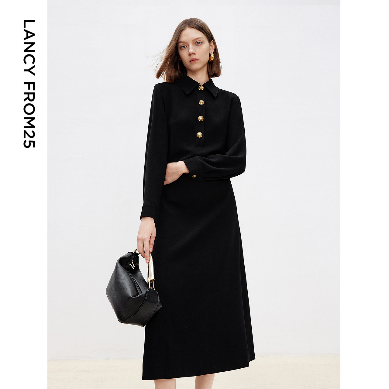 连衣裙两色花边贝壳扣长袖 小立领衬衫 裙子 青柠巴巴露亚 aaaaxbbb