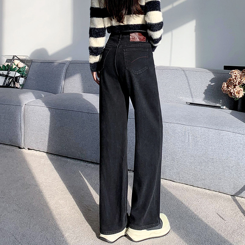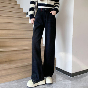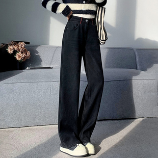 女牛仔直筒阔腿裤 2025冬新款 Jeans阿凡牛A3765加厚绒宽松显瘦窄版