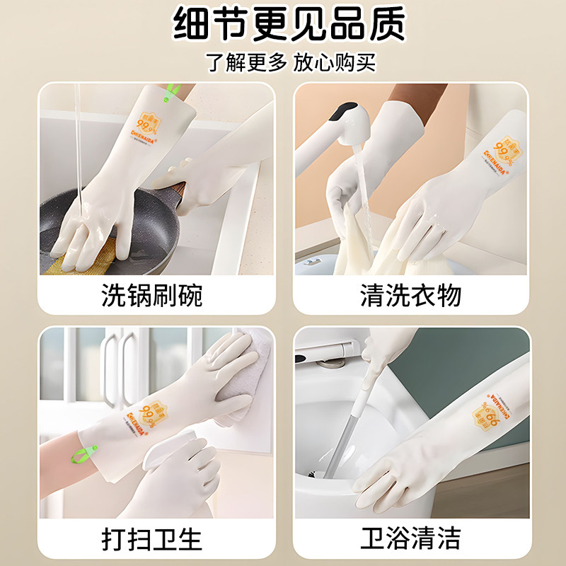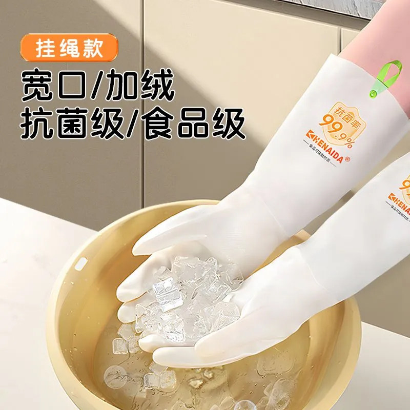 丁腈手套家务洗碗厨房耐用食品级植绒橡胶洗衣服刷碗清洁防水加绒