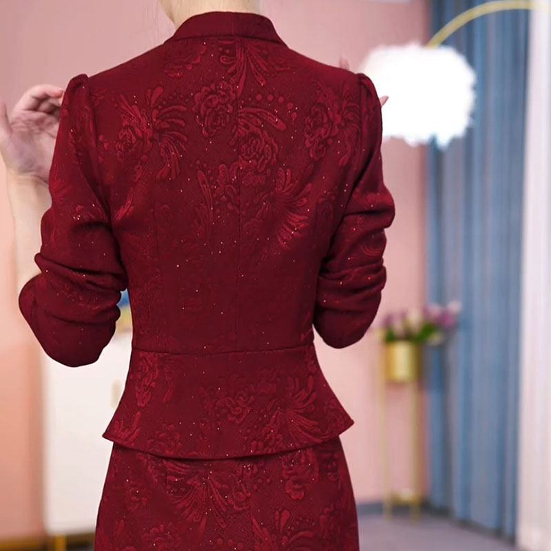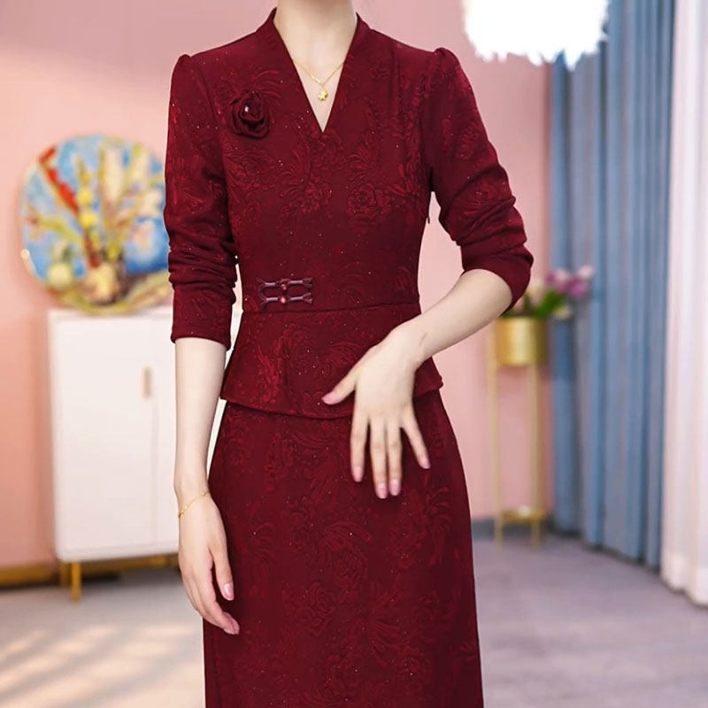 妈妈礼服 喜婆婆婚宴装 改良旗袍连衣裙2024新款 女秋冬加厚高端修身